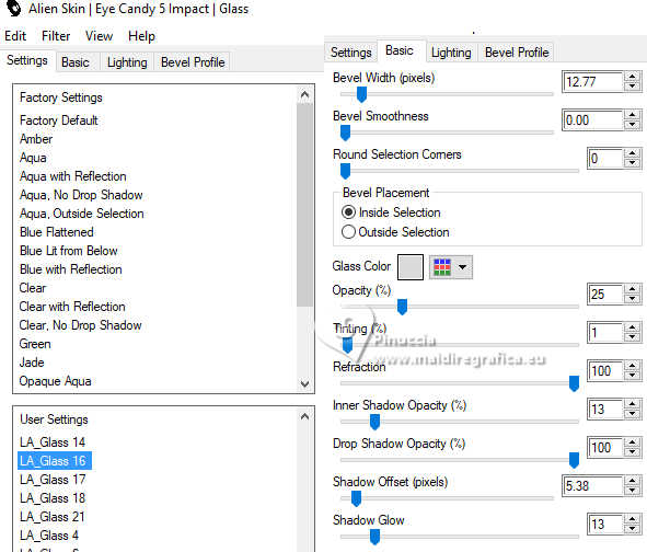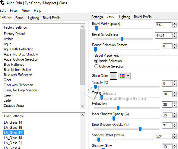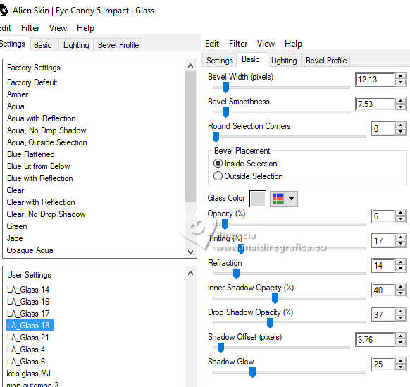 Effetti>Plugins>Alien Skin Eye Candy 5 Impact - Glass.