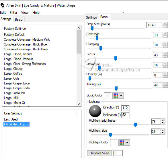 Effetti>Plugins>Alien Skin Eye Candy 5 Nature - Water Drops.