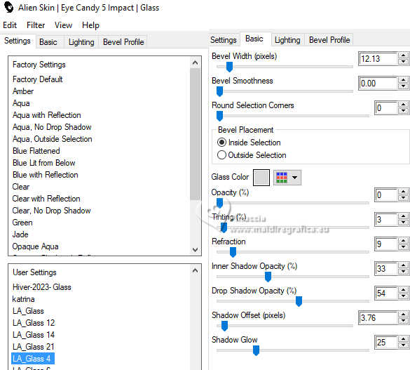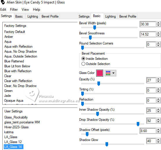 Effetti>Plugins>Alien Skin Eye Candy 5 Impact - Glass