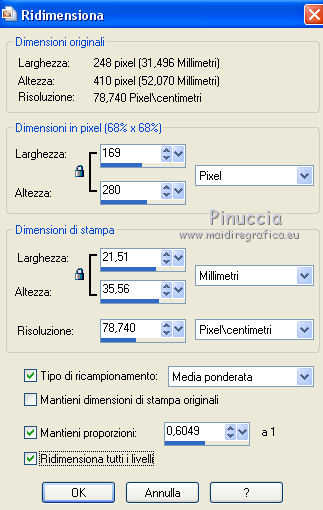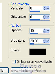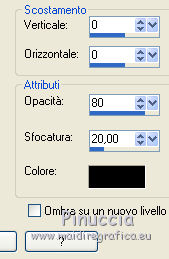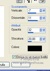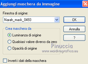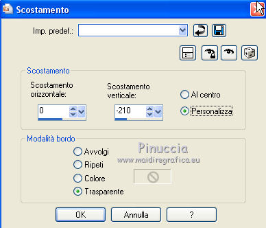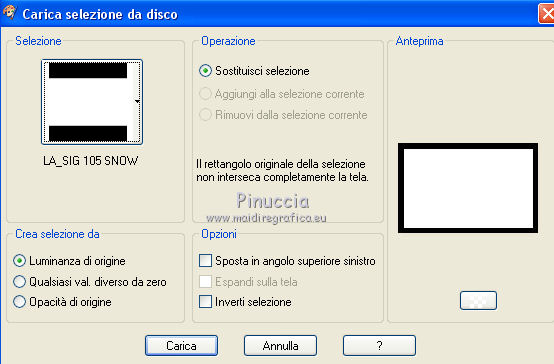qui puoi trovare qualche risposta ai tuoi dubbi. Se l'argomento che ti interessa non è presente, ti prego di segnalarmelo. Il copyright del tutorial appartiene a Laguna Azul. Questo tutorial è stato creato con PspX9 e tradotto con CorelX e CorelX2, ma può essere realizzato anche con le altre versioni di PSP. Dalla versione X4, il comando Immagine>Rifletti è stato sostituito con Immagine>Capovolgi in orizzontale, e il comando Immagine>Capovolgi con Immagine>Capovolgi in verticale. Nelle versioni X5 e X6, le funzioni sono state migliorate rendendo disponibile il menu Oggetti. Con la nuova versione X7, sono tornati Rifletti>Capovolgi, ma con nuove varianti. Vedi la scheda sull'argomento qui Traduzione francese/traduction en français qui Le vostre versioni quiOccorrente: A scelta un tube e un paesaggio invernale con abbastanza neve, larga almeno 900 pixels. (il tube usato da Laguna Azul è sotto licenza) Il resto del materiale qui Per il tube usato nella mia versione grazie Tigre Blanc Per le maschere grazie Narah. (in questa pagina trovi i links ai siti dei creatori di tubes) Filtri: in caso di dubbi, ricorda di consultare la mia sezione filtri qui Filters Unlimited 2.0 qui &<Bkg Designer sf10I> - Center Mirror, Corner Right Wrap, Blur'em (da importare in Unlimited) qui Filter Factory Gallery A - Zoom out qui Mura's Meister - Perspective Tiling qui Simple - Centre Tile, 4Way Average qui Toadies - What are you qui VM Toolbox - Softborder qui VDL Adrenaline - Snowflakes qui I filtri Factory Gallery, Simple, Toadies e VM Toolbox si possono usare da soli o importati in Filters Unlimited (come fare vedi qui) Se un filtro fornito appare con questa icona Animation Shop qui ![]() non esitare a cambiare modalità di miscelatura e opacità secondo i colori utilizzati. Nelle ultime versioni di PSP non c'è il gradiente di primo piano/sfondo (Corel_06_029) Puoi usare i gradienti delle versioni precedenti. Trovi qui i gradienti Corel X. Metti la selezione nella cartella Selezioni. Apri le maschere in PSP e minimizzale con il resto del materiale. 1. Scegli un colore chiaro dal tuo tube e impostalo come colore di primo piano. Imposta il colore di primo piano con il colore bianco #ffffff. ![]() Passa il colore di primo piano a Gradiente di primo piano/sfondo, stile Radiale. ![]() Apri una nuova immagine trasparente 900 x 550 pixels. Riempi l'immagine trasparente con il gradiente.Effetti>Plugins>Filters Unlimited 2.0 - Tile & Mirror - Mirrored & Scaled ![]() 2. Effetti>Plugins>VM Toolbox - Softborder, con i settaggi standard. ![]() Effetti>Plugins>Filters Unlimited 2.0 - &<Bkg Designer sf10I> - Center Mirror, con i settaggi standard ![]() Effetti>Plugins>Filters Unlimited 2.0 - &<Bkg Designer sf10I> - Corner right wrap. ![]() 3. Effetti>Plugins>Toadies - What are you. ![]() Ripeti l'Effetto una seconda volta. ![]() Effetti>Plugins>Filters Unlimited 2.0 - Filter Factory Gallery A - Zoom out, con i settaggi standard. ![]() Effetti>Effetti di bordo>Aumenta. Livelli>Duplica. Cambia la modalità di miscelatura di questo livello in Moltiplica, e abbassa l'opacità al 50%. 4. Livelli>Nuovo livello raster. Riempi il livello con il colore di sfondo.Livelli>Nuovo livello maschera>Da immagine. Apri il menu sotto la finestra di origine e vedrai la lista dei files aperti. Seleziona la maschera Narah_mask_0493. ![]() Livelli>Unisci>Unisci gruppo. 5. Apri il tuo paesaggio. Tasto maiuscola+D sulla tastiera per fare una copia. Minimizza l'originale e lavora sulla copia. Immagine>Ridimensiona, 900 pixels di larghezza, tutti i livelli selezionato. Livelli>Nuovo livello maschera>Da immagine. Apri il menu sotto la finestra di origine e seleziona la maschera 00-20-40. ![]() Livelli>Unisci>Unisci gruppo. Modifica>Copia. Torna al tuo lavoro e vai a Modifica>Incolla come nuovo livello. Regola>Messa a fuoco>Metti a fuoco. Cambia la modalità di miscelatura di questo livello in Moltiplica, o Rafforza (secondo la tua immagine). per il mio esempio ho scelto Moltiplica, e abbassa l'opacità tra 40-70%; per il mio paesaggio ho fatto 40%. ![]() Rinomina questo livello Sfondo. 6. Livelli>Nuovo livello raster. Riempi il livello con il colore di sfondo.Livelli>Nuovo livello maschera>Da immagine. Apri il menu sotto la finestra di origine e seleziona la maschera Narah_mask_0879. ![]() Livelli>Unisci>Unisci gruppo. Apri l'immagine di sfondo LA_swirl HG e vai a Modifica>Copia. Torna al tuo lavoro e vai a Modifica>Incolla come nuovo livello. Cambia la modalità di miscelatura di questo livello in Luce diffusa, o, come nel mio esempio in Sovrapponi. Dipende dal paesaggio, il mio è così ![]() 7. Chiudi il livello di sfondo, e rimani posizionato sul livello superiore. Livelli>Nuovo livello raster. Riempi il livello con il colore di sfondo.Livelli>Nuovo livello maschera>Da immagine. Apri il menu sotto la finestra di origine e seleziona la maschera Narah_mask_1175. ![]() Livelli>Unisci>Unisci gruppo. Abbassa l'opacità di questo livello al 75%. 8. Apri l'immagine LA_Snowflake HG e vai a Modifica>Copia. Torna al tuo lavoro e vai a Modifica>Incolla come nuovo livello. Cambia la modalità di miscelatura di questo livello in Moltiplica, e abbassa l'opacità al 50%. 9. Apri il tube LA_Book e vai a Modifica>Copia. Torna al tuo lavoro e vai a Modifica>Incolla come nuovo livello. Effetti>Effetti 3D>Sfalsa ombra. ![]() Attiva l'immagine del paesaggio che hai minimizzato. Scegli un'area dell'immagine che vorresti avere nella cornice del libro. Sotto l'immagine dovrebbe esserci della neve. Attiva lo strumento Ritaglio (tasto R) ![]() e, tenendo premuto il tasto sinistro del mouse, trascina un'area sulla sezione che vuoi avere. Quando sei soddisfatto, fai doppio clic nell'area chiara dell'immagine o clicca su Applica per applicare il ritaglio![]() 10. Immagine>Ridimensiona, 280 pixels di altezza, ma dovrebbe avere una larghezza di circa 155-230 pixels, altrimenti è troppo stretta. ![]() Modifica>Copia. Torna al tuo lavoro e vai a Modifica>Incolla come nuo