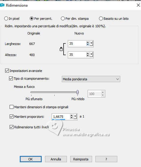 7. Immagine>Ridimensiona, al 35%, tutti i livelli selezionato.