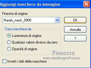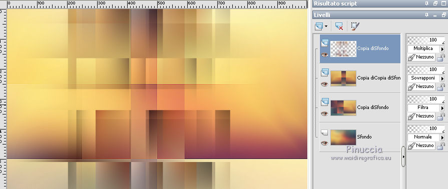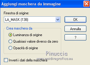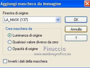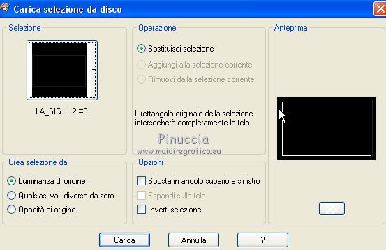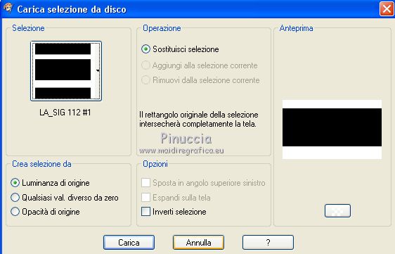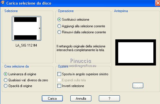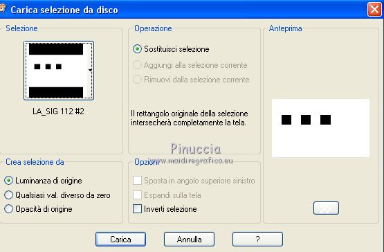 qui puoi trovare qualche risposta ai tuoi dubbi. Se l'argomento che ti interessa non è presente, ti prego di segnalarmelo. Il copyright del tutorial appartiene a Laguna Azul. Questo tutorial è stato creato con PspX9 e tradotto con CorelX e CorelX2, ma può essere realizzato anche con le altre versioni di PSP. Dalla versione X4, il comando Immagine>Rifletti è stato sostituito con Immagine>Capovolgi in orizzontale, e il comando Immagine>Capovolgi con Immagine>Capovolgi in verticale. Nelle versioni X5 e X6, le funzioni sono state migliorate rendendo disponibile il menu Oggetti. Con la nuova versione X7, sono tornati Rifletti>Capovolgi, ma con nuove varianti. Vedi la scheda sull'argomento qui Traduzione francese/traduction en français qui Le vostre versioni qui Occorrente: Un tube a scelta (il tube usato dall'autrice del tutorial è un tube soggetto a licenza). Il resto del materiale qui Per il mio tube grazie Maryse. Per una maschera grazie Narah. Il resto del materiale è di Laguna Azul. (in questa pagina trovi i links ai siti dei creatori di tubes) Filtri: se hai problemi con i filtri, consulta la mia sezione filtri qui Filters Unlimited 2.0 qui &<Bkg Kaleidoscope> - @Mirrored & Scaled (da importare in Unlimited) qui AAA Frames - Foto Frame qui AP 01 [Innovations] - Lines SilverLining qui Alien Skin Eye Candy 5 Impact - Glass qui Mehdi - Sorting Tiles qui Toadies - Weaver qui °v° Kiwi Oelfilter - Guck Mal qui I filtri Toadies e Kiwi si possono usare da soli o importati in Filters Unlimited. come fare vedi qui) Se un filtro fornito appare con questa icona ![]() non esitare a cambiare modalità di miscelatura e opacità secondo i colori utilizzati. Apri i font e minimizzali. Li troverai nella lista dei font disponibili, quando ti serviranno. Con i nuovi sistemi operativi, questo non è più possibile. Per usare un font, occorre copiarlo nella cartella Font di Windows (non dimenticare, quando la cartella diventa troppo grande, di togliere i font che non usi; potrai sempre aggiungerli all'occorrenza). Metti il preset Cliccando sul file una o due volte (a seconda delle tue impostazioni), automaticamente il preset si installerà nella cartella corretta. perchè uno o due clic vedi qui Metti le selezioni nella cartella Selezioni. Apri le maschere in PSP e minimizzale con il resto del materiale. 1. Imposta il colore di primo piano con un colore medio del tuo tube; per l'esempio: #ffd916. Imposta il colore di sfondo con il colore bianco #ffffff. ![]() 2. Scegli uno dei 7 set che corrisponde al colore del tuo tube. Per il mio esempio ho scelto il set n.1. Apri l'immagine di sfondo, per me LA SET 1 (Background). Finestra>Duplica. Minimizza l'originale che ti servirà più tardi. Attiva la copia, che che sarà la base del tuo lavoro. Livelli>Duplica. Immagine>Rifletti. Immagine>Capovolgi. Effetti>Plugins>Mehdi - Sorting Tiles. ![]() Effetti>Effetti di bordo>Aumenta. Cambia la modalità di miscelatura di questo livello in Filtra. Livelli>Duplica. 3. Effetti>Plugins>Filters Unlimited 2.0 - °v° Kiwi Oelfilter - Guck mal, con i settaggi standard. ![]() Cambia la modalità di miscelatura di questo livello in Sovrapponi. ![]() 4. Attiva il livello inferiore. Livelli>Duplica. Livelli>Disponi>Porta in alto. Immagine>Ridimensiona, all'80%, tutti i livelli non selezionato, ricampionamento Media ponderata. ![]() Effetti>Plugins>Filters Unlimited 2.0 - &<Bkg Kaleidoscope> - @Mirrored & Scaled. ![]() Attiva lo strumento Bacchetta magica , con i seguenti settaggi:![]() Clicca nella parte bianca per selezionarla. ![]() Premi sulla tastiera il tasto CANC ![]() Selezione>Deseleziona. 5. Effetti>Plugins>Toadies - Weaver, con i settaggi standard. ![]() Immagine>Ruota per gradi - 90 gradi a destra. ![]() Ripeti Effetti>Plugins>Toadies - Weaver, con gli stessi settaggi. ![]() Cambia la modalità di miscelatura di questo livello in Moltiplica. ![]() 6. Selezione>Carica/Salva selezione>Carica selezione da disco. Cerca e carica la selezione LA_SIG 112 #1. ![]() Attiva il livello inferiore. Selezione>Innalza selezione a livello. Livelli>Disponi>Porta in alto. Effetti>Plugins>AP 01 [Innovations] - Lines SilverLining. ![]() Effetti>Effetti 3D>Sfalsa ombra. ![]() Selezione>Deseleziona. 7. Livelli>Nuovo livello raster. Riempi il livello con il colore di primo piano.Livelli>Nuovo livello maschera>Da immagine. Apri il menu sotto la finestra di origine e vedrai la lista dei files aperti. Seleziona la maschera LA_MASK 138. ![]() Livelli>Unisci>Unisci gruppo. 8. Dal tuo set apri l'immagine Stripe e vai a Modifica>Copia. Torna al tuo lavoro e vai a Modifica>Incolla come nuovo livello. Effetti>Effetti di immagine>Scostamento. ![]() Selezione>Carica/Salva selezione>Carica selezione da disco. Cerca e carica la selezione LA_SIG 112 #2. ![]() Premi sulla tastiera il tasto CANC. Selezione>Deseleziona. 9. Effetti>Plugins>Alien Skin Eye Candy 5 Impact - Glass. Seleziona il preset LA_SIG 112 e ok. ![]() Livelli>Nuovo livello raster. Riempi il livello con il colore di sfondo.Livelli>Nuovo livello maschera>Da immagine. Apri il menu sotto la finestra di origine e seleziona la maschera LA_MASK 137 ![]() Livelli>Unisci>Unisci gruppo. Effetti>Effetti 3D>Sfalsa ombra. ![]() 10. Attiva il livello inferiore. Livelli>Duplica. Chiudi questo livello e attiva il livello soprastante. ![]() Livelli>Unisci>Unisci visibile. Immagine>Ridimensiona, con i settaggi precedenti. ![]() Regola>Messa a fuoco>Metti a fuoco. 11. Riapri e attiva il livello inferiore. Effetti>Plugins>AAA Frames - Foto Frame. ![]() Effetti>Effetti di immagine>Motivo unico. ![]() 12. Rimani su questo livello. Livelli>Nuovo livello raster. Riempi con il colore di primo piano.Livelli>Nuovo livello maschera>Da immagine. Apri il menu sotto la finestra d'origine e seleziona la maschera Narah_mask_0900. ![]() Livelli>Unisci>Unisci gruppo. 13. Attiva il livello superiore. Effetti>Effetti 3D>Sfalsa ombra. ![]() Apri il fiore del tuo set e vai a Modifica>Copia. Torna al tuo lavoro e vai a Mod