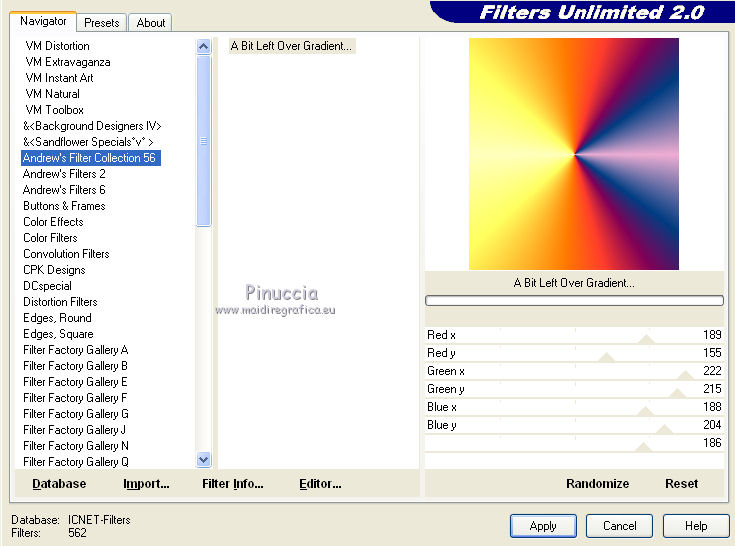 Effets>Modules Externes>Filters Unlimited - Andrew's Filter Collection 56 - A Bit Left Over Gradient.
