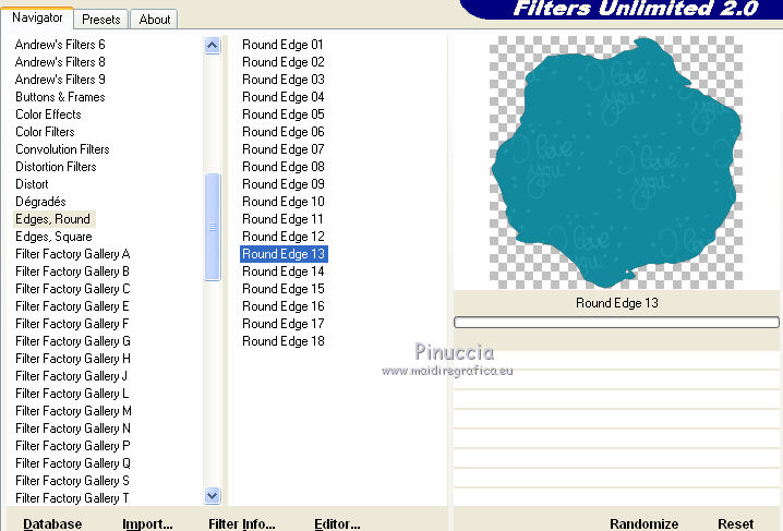 Effets>Modules Externes>Filters Unlimited - Edges Round, Round Edge 13.