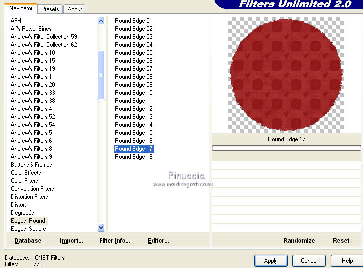 Effets>Modules Externes>Filters Unlimited - Edges Round, Round Edge 17.