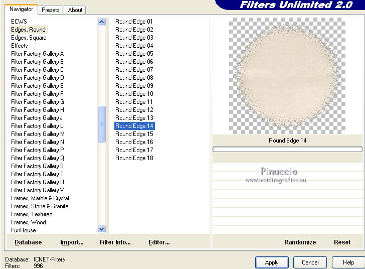 Effets>Modules Externes>Filters Unlimited 2.0 - Edges,Round - Round Edge 14.