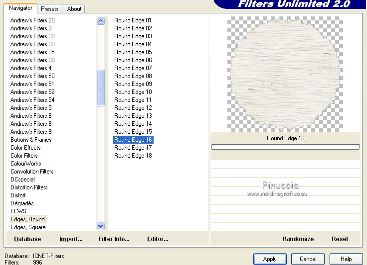 Effets>Modules Externes>Filters Unlimited 2.0 - Edges,Round - Round Edge 16.