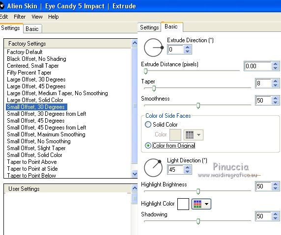 Effets>Modules Externes>Alien Skin Eye Candy 5 Impact - Extrude