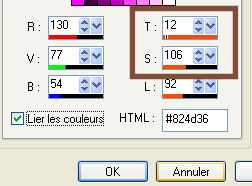 noter les valeurs de teinte (T) et Saturation (S) de votre couleur d'avant plan