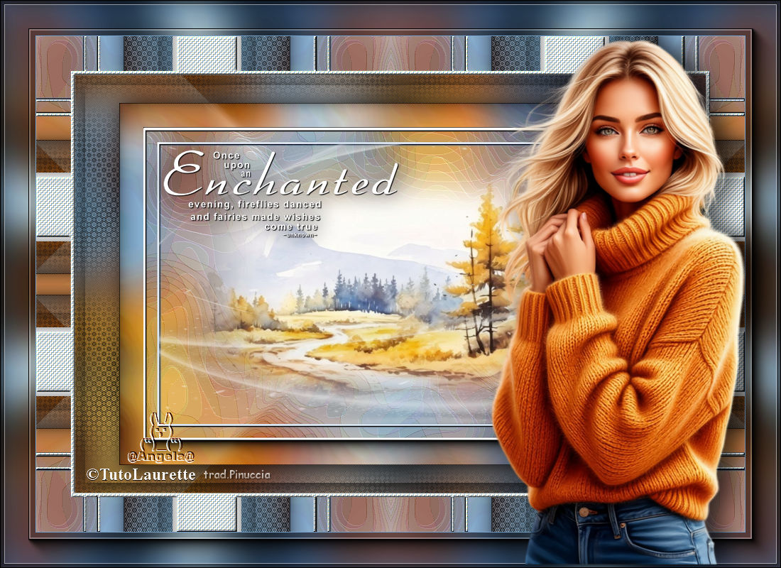 qui puoi trovare qualche risposta ai tuoi dubbi. Se l'argomento che ti interessa non è presente, ti prego di segnalarmelo. Questo tutorial è stato scritto con PSP2020 e tradotto con PSPX9, ma può essere realizzato anche con le altre versioni di PSP. Dalla versione X4, il comando Immagine>Rifletti è stato sostituito con Immagine>Capovolgi in orizzontale, e il comando Immagine>Capovolgi con Immagine>Capovolgi in verticale. Nelle versioni X5 e X6, le funzioni sono state migliorate rendendo disponibile il menu Oggetti. Con la nuova versione X7, sono tornati Rifletti>Capovolgi, ma con nuove varianti. Vedi la scheda sull'argomento qui Occorrente: ![]() Materiale di Laurette. L'autrice prega di non condividere in rete i suoi tubes. (in questa pagina trovi i links ai siti dei creatori di tubes) ![]() in caso di dubbi, ricorda di consultare la mia sezione filtri qui Filters Unlimited 2.0 qui Alf's Power Grads - Square Grads qui AAA Frames - Foto Frame qui L&K's - L&K's Palmyre qui Graphics Plus - Quick Tile II qui I filtri Alf's e Graphics Plus si possono usare da soli o importati in Filters Unlimited (come fare vedi qui) Se un filtro fornito appare con questa icona ![]() non esitare a cambiare modalità di miscelatura e opacità secondo i colori utilizzati. Nelle ultime versioni di PSP non c'è il gradiente di primo piano/sfondo (Corel_06_029) Puoi usare i gradienti delle versioni precedenti. Trovi qui i gradienti Corel X. ![]() Imposta il colore di primo piano con #76a3cc, e il colore di sfondo con #d5b566. ![]() 1. Apri una nuova immagine trasparente 900 x 600 pixels. ![]() Selezione>Seleziona tutto. Apri l'immagine fond ![]() Modifica>Copia. Torna al tuo lavoro e vai a Modifica>Incolla nella selezione. Selezione>Deseleziona. Effetti>Effetti di immagine>Motivo unico, con i settaggi standard. ![]() Regola>Sfocatura>Sfocatura gausssiana - raggio 30. ![]() Livelli>Duplica. Effetti>Plugins>Filters Unlimited 2.0 - Alf's Power Grads - Square Grads, con i settaggi standard. ![]() Cambia la modalità di miscelatura di questo livello in Filtra. ![]() Livelli>Unisci>Unisci giù. 2. Livelli>Duplica. Effetti>Effetti artistici>Topagrafia, colore di primo piano. ![]() Regola>Messa a fuoco>Metti a fuoco. Effetti>Plugins>AAA Frames - Foto Frame. ![]() Apri il tube déco-n.2 ![]() Modifica>Copia. Torna al tuo lavoro e vai a Modifica>Incolla come nuovo livello. Non spostarlo. Effetti>Effetti 3D>Sfalsa ombra, colore nero. ![]() 3. Attiva lo strumento Bacchetta magica ![]() e clicca al centro del livello per selezionarlo. Livelli>Nuovo livello raster, Raster 3. Apri il tube del paesaggio paysage_n.2 ![]() Cancella la firma e vai a Modifica>Copia. Torna al tuo lavoro e vai a Modifica>Incolla nella selezione. Livelli>Duplica. Livelli>Unisci>Unisci giù. Effetti>Effetti 3D>Sfalsa ombra, colore di primo piano. ![]() Selezione>Deseleziona. La tag e i livelli ![]() 5. Chiudi il livello di sfondo, Raster 1. Livelli>Unisci>Unisci visibile. Immagine>Ridimensiona, all'85%, tutti i livelli non selezionato. ![]() Riapri e attiva il livello inferiore. Effetti>Plugins>L&K's - L&K's Palmyre, con i settaggi standard. ![]() Attiva nuovamente il livello superiore. Effetti>Effetti 3D>Sfalsa ombra, colore nero. ![]() 5. Selezione>Seleziona tutto. Selezione>Modifica>Contrai - 20 pixels. Effetti>Effetti 3D>Sfalsa ombra, con i settaggi precedenti in memoria. Selezione>Seleziona tutto. Immagine>Aggiungi bordatura, 40 pixels, simmetriche, colore bianco. Selezione>Inverti. Effetti>Plugins>Graphics Plus - Quick Tile II. ![]() Selezione>Inverti. Selezione>Modifica>Seleziona bordature selezione. ![]() Imposta il colore di primo piano con il colore bianco. Riempi la selezione con il colore bianco.Selezione>Deseleziona. 6. Attiva lo strumento Bacchetta magica , tolleranza 30,e clicca nelle parti bianche per selezionarle (un solo clic è sufficiente) ![]() Imposta nuovamente il colore di primo piano con il colore iniziale #76a3cc. ![]() Effetti>Effetti di trama>Intessitura colore intessitura: colore di primo piano, colore spazio: colore di sfondo. ![]() Effetti>Effetti 3D>Smusso a incasso, colore bianco. ![]() Selezione>Deseleziona. 7. Apri il tube déco-1 ![]() Modifica>Copia. Torna al tuo lavoro e vai a Modifica>Incolla come nuovo livello. Non spostarlo. Effetti>Effetti 3D>Sfalsa ombra, colore di primo piano, ombra su nuovo livello selezionato ![]() Rimani sul livello dell'ombra e cambia la modalità di miscelatura in Moltiplica. Immagine>Aggiungi bordatura, 1 pixel, simmetriche, colore di primo piano. Modifica>Copia 8. Selezione>Seleziona tutto. Immagine>Aggiungi bordatura, 50 pixels, simmetriche, colore bianco. Selezione>Inverti Modifica>Incolla nella selezione - l'immagine copiata al punto precedente. Regola>Sfocatura>Sfocatura gaussiana - raggio 30 ![]() Selezione>Innalza selezione a livello. Cambia la modalità di miscelatura di questo livello in Moltiplica. Effetti>Plugins>AAA Frames - Foto Frame, con i settaggi precedenti. ![]() Livelli>Unisci>Unisci visibile. Effetti>Plugins>AAA Frames - Foto Frame ![]() Selezione>Deseleziona. 9. Apri il tube della donna femme_741_laurette ![]() Cancella la firma e vai a Modifica>Copia. Torna al tuo lavoro e vai a Modifica>Incolla come nuovo livello. Sposta il tube a destra.Effetti>Effetti 3D>Sfalsa ombra, colore nero, ombra su nuovo livello non selezionato. ![]() 10. Apri il tube word-enchanted ![]() Modifica>Copia. Torna al tuo lavoro e vai a Modifica>Incolla come nuovo livello. Posiziona il tube a tuo piacimento.Effetti>Effetti 3D>Sfalsa ombra, colore nero. ![]() 11. Firma il tuo lavoro. Immagine>Aggiungi bordatura, 1 pixel, simmetriche, colore nero. Salva in formato jpg. Per il tube della donna grazie Virginia ![]() ![]() Le vostre versioni. Grazie ![]() Irene ![]() Tosca dei gatti ![]() Angelilla ![]() Puoi scrivermi se hai problemi o dubbi, o trovi un link che non funziona, o soltanto per un saluto. |