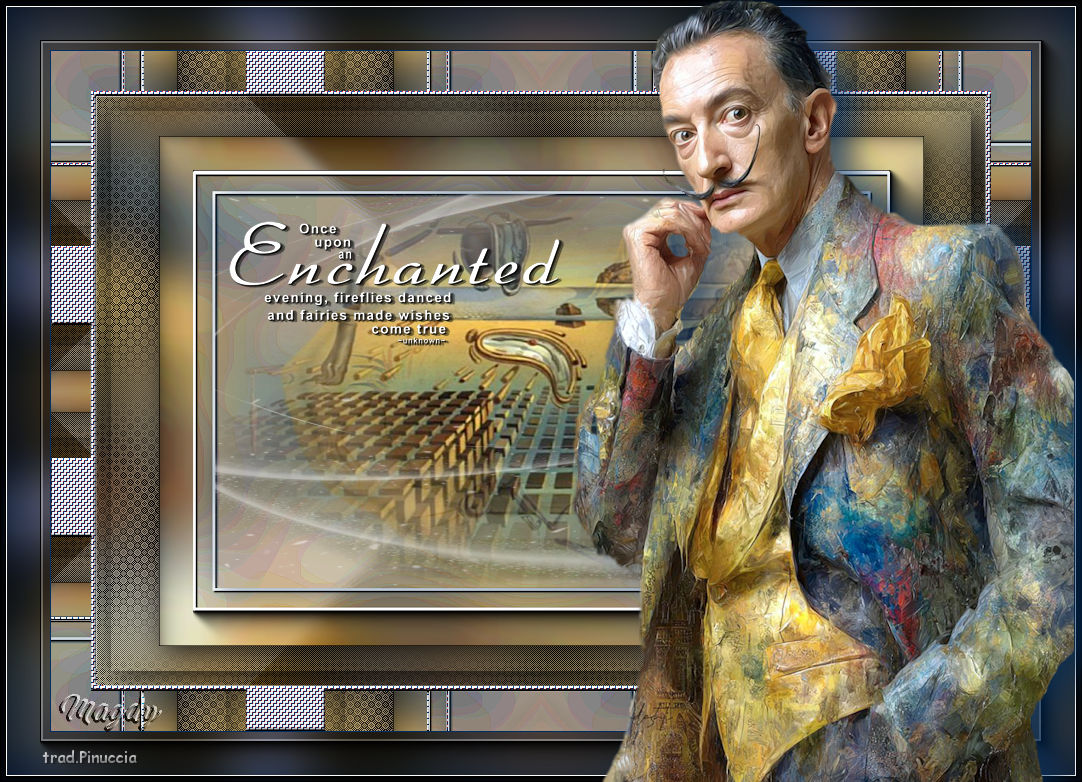 qui puoi trovare qualche risposta ai tuoi dubbi. Se l'argomento che ti interessa non è presente, ti prego di segnalarmelo. Questo tutorial è stato scritto con PSP2020 e tradotto con PSPX9, ma può essere realizzato anche con le altre versioni di PSP. Dalla versione X4, il comando Immagine>Rifletti è stato sostituito con Immagine>Capovolgi in orizzontale, e il comando Immagine>Capovolgi con Immagine>Capovolgi in verticale. Nelle versioni X5 e X6, le funzioni sono state migliorate rendendo disponibile il menu Oggetti. Con la nuova versione X7, sono tornati Rifletti>Capovolgi, ma con nuove varianti. Vedi la scheda sull'argomento qui Occorrente: ![]() Materiale di Laurette. L'autrice prega di non condividere in rete i suoi tubes. (in questa pagina trovi i links ai siti dei creatori di tubes) ![]() in caso di dubbi, ricorda di consultare la mia sezione filtri qui Filters Unlimited 2.0 qui Alf's Power Grads - Square Grads qui AAA Frames - Foto Frame qui L&K's - L&K's Palmyre qui Graphics Plus - Quick Tile II qui I filtri Alf's e Graphics Plus si possono usare da soli o importati in Filters Unlimited (come fare vedi qui) Se un filtro fornito appare con questa icona ![]() non esitare a cambiare modalità di miscelatura e opacità secondo i colori utilizzati. Nelle ultime versioni di PSP non c'è il gradiente di primo piano/sfondo (Corel_06_029) Puoi usare i gradienti delle versioni precedenti. Trovi qui i gradienti Corel X. ![]() Imposta il colore di primo piano con #76a3cc, e il colore di sfondo con #d5b566. ![]() 1. Apri una nuova immagine trasparente 900 x 600 pixels. ![]() Selezione>Seleziona tutto. Apri l'immagine fond ![]() Modifica>Copia. Torna al tuo lavoro e vai a Modifica>Incolla nella selezione. Selezione>Deseleziona. Effetti>Effetti di immagine>Motivo unico, con i settaggi standard. ![]() Regola>Sfocatura>Sfocatura gausssiana - raggio 30. ![]() Livelli>Duplica. Effetti>Plugins>Filters Unlimited 2.0 - Alf's Power Grads - Square Grads, con i settaggi standard. ![]() Cambia la modalità di miscelatura di questo livello in Filtra. ![]() Livelli>Unisci>Unisci giù. 2. Livelli>Duplica. Effetti>Effetti artistici>Topagrafia, colore di primo piano. ![]() Regola>Messa a fuoco>Metti a fuoco. Effetti>Plugins>AAA Frames - Foto Frame. ![]() Apri il tube déco-n.2 ![]() Modifica>Copia. Torna al tuo lavoro e vai a Modifica>Incolla come nuovo livello. Non spostarlo. Effetti>Effetti 3D>Sfalsa ombra, colore nero. ![]() 3. Attiva lo strumento Bacchetta magica ![]() e clicca al centro del livello per selezionarlo. Livelli>Nuovo livello raster, Raster 3. Apri il tube del paesaggio paysage_n.2 ![]() Cancella la firma e vai a Modifica>Copia. Torna al tuo lavoro e vai a Modifica>Incolla nella selezione. Livelli>Duplica. Livelli>Unisci>Unisci giù. Effetti>Effetti 3D>Sfalsa ombra, colore di primo piano. ![]() Selezione>Deseleziona. La tag e i livelli ![]() 5. Chiudi il livello di sfondo, Raster 1. Livelli>Unisci>Unisci visibile. Immagine>Ridimensiona, all'85%, tutti i livelli non selezionato. ![]() Riapri e attiva il livello inferiore. Effetti>Plugins>L&K's - L&K's Palmyre, con i settaggi standard. ![]() Attiva nuovamente il livello superiore. Effetti>Effetti 3D>Sfalsa ombra, colore nero. ![]() 5. Selezione>Seleziona tutto. Selezione>Modifica>Contrai - 20 pixels. Effetti>Effetti 3D>Sfalsa ombra, con i settaggi precedenti in memoria. Selezione>Seleziona tutto. Immagine>Aggiungi bordatura, 40 pixels, simmetriche, colore bianco. Selezione>Inverti. Effetti>Plugins>Graphics Plus - Quick Tile II. ![]() Selezione>Inverti. Selezione>Modifica>Seleziona bordature selezione. ![]() Imposta il colore di primo piano con il colore bianco. Riempi la selezione con il colore bianco.Selezione>Deseleziona. 6. Attiva lo strumento Bacchetta magica , tolleranza 30,e clicca nelle parti bianche per selezionarle (un solo clic è sufficiente) ![]() Imposta nuovamente il colore di primo piano con il colore iniziale #76a3cc. ![]() Effetti>Effetti di trama>Intessitura colore intessitura: colore di primo piano, colore spazio: colore di sfondo. ![]() Effetti>Effetti 3D>Smusso a incasso, colore bianco. ![]() Selezione>Deseleziona. 7. Apri il tube déco-1 ![]() Modifica>Copia. Torna al tuo lavoro e vai a Modifica>Incolla come nuovo livello. Non spostarlo. Effetti>Effetti 3D>Sfalsa ombra, colore di primo piano, ombra su nuovo livello selezionato ![]() Rimani sul livello dell'ombra e cambia la modalità di miscelatura in Moltiplica. Immagine>Aggiungi bordatura, 1 pixel, simmetriche, colore di primo piano. Modifica>Copia 8. Selezione>Seleziona tutto. Immagine>Aggiungi bordatura, 50 pixels, simmetriche, colore bianco. Selezione>Inverti Modifica>Incolla nella selezione - l'immagine copiata al punto precedente. Regola>Sfocatura>Sfocatura gaussiana - raggio 30 ![]() Selezione>Innalza selezione a livello. Cambia la modalità di miscelatura di questo livello in Moltiplica. Effetti>Plugins>AAA Frames - Foto Frame, con i settaggi precedenti. ![]() Livelli>Unisci>Unisci visibile. Effetti>Plugins>AAA Frames - Foto Frame ![]() Selezione>Deseleziona. 9. Apri il tube della donna femme_741_laurette ![]() Cancella la firma e vai a Modifica>Copia. Torna al tuo lavoro e vai a Modifica>Incolla come nuovo livello. Sposta il tube a destra.Effetti>Effetti 3D>Sfalsa ombra, colore nero, ombra su nuovo livello non selezionato. ![]() 10. Apri il tube word-enchanted ![]() Modifica>Copia. Torna al tuo lavoro e vai a Modifica>Incolla come nuovo livello. Posiziona il tube a tuo piacimento.Effetti>Effetti 3D>Sfalsa ombra, colore nero. ![]() 11. Firma il tuo lavoro. Immagine>Aggiungi bordatura, 1 pixel, simmetriche, colore nero. Salva in formato jpg. Per il tube della donna grazie Virginia ![]() ![]() Le vostre versioni. Grazie ![]() Irene ![]() Tosca dei gatti ![]() Angelilla ![]() Magdy ![]() Puoi scrivermi se hai problemi o dubbi, o trovi un link che non funziona, o soltanto per un saluto. |