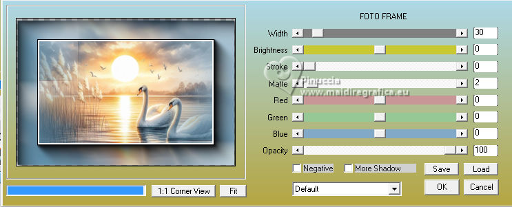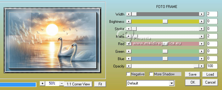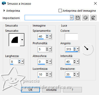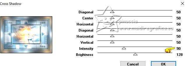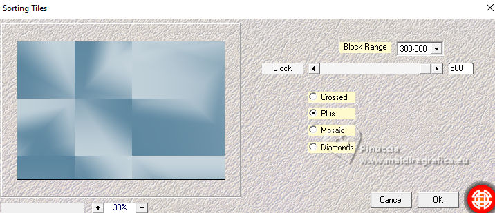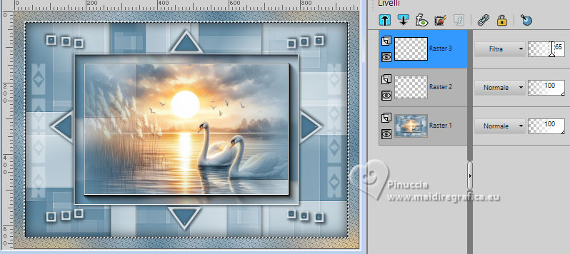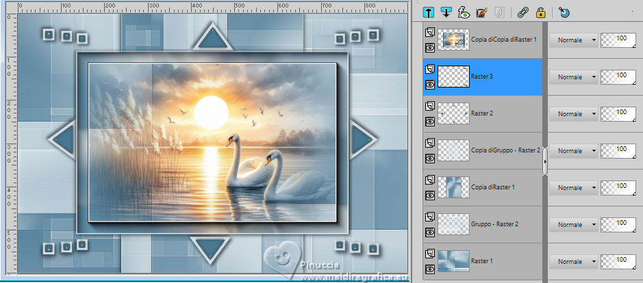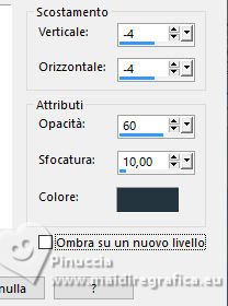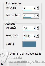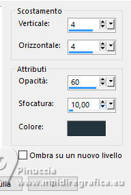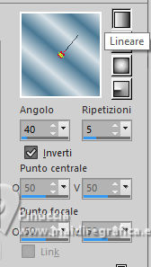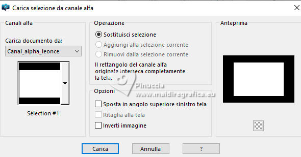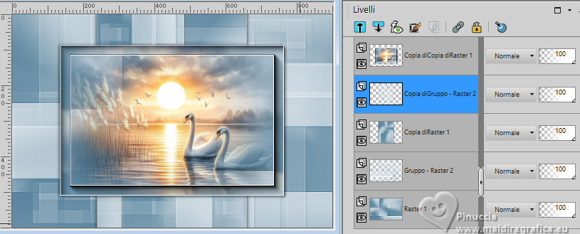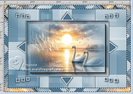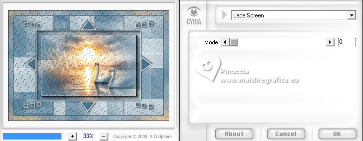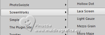 qui puoi trovare qualche risposta ai tuoi dubbi. Se l'argomento che ti interessa non è presente, ti prego di segnalarmelo. Questo tutorial è stato scritto con PSP2020 e tradotto con PSPX9, ma può essere realizzato anche con le altre versioni di PSP. Dalla versione X4, il comando Immagine>Rifletti è stato sostituito con Immagine>Capovolgi in orizzontale, e il comando Immagine>Capovolgi con Immagine>Capovolgi in verticale. Nelle versioni X5 e X6, le funzioni sono state migliorate rendendo disponibile il menu Oggetti. Con la nuova versione X7, sono tornati Rifletti>Capovolgi, ma con nuove varianti. Vedi la scheda sull'argomento qui Occorrente: ![]() Materiale di Laurette. L'autrice prega di non condividere in rete i suoi tubes. (in questa pagina trovi i links ai siti dei creatori di tubes) ![]() in caso di dubbi, ricorda di consultare la mia sezione filtri qui Filters Unlimited 2.0 qui Mehdi - Sorting Tiles qui Simple - Diamonds qui Cybia - Screenworks qui Graphics Plus Cross Shadow qui AAA Frames - Foto Frame qui I filtri Simple - Cybia e Graphics Plus si possono usare da soli o importati in Filters Unlimited (come fare vedi qui) Se un filtro fornito appare con questa icona ![]() non esitare a cambiare modalità di miscelatura e opacità secondo i colori utilizzati. Nelle ultime versioni di PSP non c'è il gradiente di primo piano/sfondo (Corel_06_029) Puoi usare i gradienti delle versioni precedenti. Trovi qui i gradienti Corel X. ![]() Apri la maschera in PSP e minimizzala con il resto del materiale. Colori utilizzati ![]() 1. Apri Canal Alpha Leonce Questa immagine, che sarà la base del tuo lavoro, non è vuota, ma contiene una selezione salvata sul canale alfa. Se hai problemi con il canale alfa, apri una nuova immagine trasparente 900 x 600 pixels, ![]() e usa la selezione da disco 2. Scegli due colori dai tuoi tubes. Per l'esempio: colore di primo piano #497894 colore di sfondo #d8e4e6. ![]() colore 3 #25353f colore 4 #ffffff colore 5 #000000 Passa il colore di primo piano a Gradiente di primo piano/sfondo, stile Lineare. ![]() Riempi l'immagine trasparente con il gradiente.Regola>Sfocatura>Sfocatura gaussiana - raggio 40. ![]() Effetti>Plugins>Mehdi - Sorting Tiles. ![]() Effetti>Effetti di bordo>Aumenta. 3. Livelli>Duplica. Immagine>Ridimensiona, al 70%, tutti i livelli non selezionato. Effetti>Effetti 3D>Sfalsa ombra, colore 3 #25353f. ![]() Ripeti l'Effetto Sfalsa ombra, verticale e orizzontal -4. ![]() 4. Immagine>Ruota per gradi - 90 gradi a destra. ![]() Effetti>Effetti di bordo>Aumenta. Livelli>Duplica. Immagine>Ruota per gradi - 90 gradi a sinistra. ![]() 5. Selezione>Carica/Salva selezione>Carica selezione da canale alfa. La selezione 1 è subito disponibile. Devi soltanto cliccare Carica. ![]() Apri il tube del paesaggio paysage_leonce ![]() Modifica>Copia. Torna al tuo lavoro e vai a Modifica>Incolla come nuovo livello. Posiziona il tube al centro della selezione.Selezione>Inverti. Premi sulla tastiera il tasto CANC ![]() Di nuovo Selezione>Inverti. Livelli>Unisci>Unisci giù. Mantieni selezionato. 6. Effetti>Plugins>AAA Frames - Foto Frame ![]() Ripeti l'Effetto Foto Frame, width a 2 e ok. ![]() Selezione>Deseleziona. 7. Attiva il livello inferiore, Raster 1. Livelli>Nuovo livello raster (Raster 2). Imposta il colore di primo piano con il colore bianco. ![]() Riempi il livello con il colore bianco.Livelli>Nuovo livello maschera>Da immagine. Apri il menu sotto la finestra di origine e vedrai la lista dei files aperti. Seleziona la maschera Mask_Leonce ![]() Effetti>Effetti di bordo>Aumenta. Livelli>Unisci>Unisci gruppo. Immagine>Rifletti>Rifletti orizzontalmente. Effetti>Effetti 3D>Sfalsa ombra, colore 1 #497894. ![]() 8. Rimani sul livello della maschera, Gruppo Raster 2. Livelli>Duplica. Immagine>Ridimensiona, al 70%, tutti i livelli non selezionato. Immagine>Ruota per gradi - 90 gradi a sinistra. ![]() Livelli>Disponi>Sposta su ![]() 9. Rimani ancora su questo livello, Copia di Gruppo-Raster 2 (il secondo dall'alto). Apri il tube Décoration_Léonce 1 ![]() Modifica>Copia. Torna al tuo lavoro e vai a Modifica>Incolla come nuovo livello. Non spostarlo. 10. Apri il tube Décoration_Léonce 2 ![]() Modifica>Copia. Torna al tuo lavoro e vai a Modifica>Incolla come nuovo livello. Non spostarlo ![]() 11. Immagine>Aggiungi bordatura, 2 pixels, simmetriche, colore 3 #25353f Selezione>Seleziona tutto. Immagine>Aggiungi bordatura, 30 pixels, simmetriche, colore 1 #497894 Selezione>Inverti. Effetti>Plugins>Simple - Diamonds Questo effetto lavora senza finestra (se lo usi in Unlimited, puoi vedere il risultato). ![]() Regola>Sfocatura>Sfocatura gaussiana, con i settaggi precedenti. ![]() Mantieni selezionato. 12. Effetti>Plugins>Cybia - Screenworks - Lace Screen ![]() se usi la vecchia versione del filtro, questo lavora senza finestra: Effetti>Plugins>Screenworks - Lace Screen ![]() Effetti>Effetti 3D>Sfalsa ombra, colore nero. ![]() Selezione>Deseleziona. 13. Apri il tube Décoration_Léonce 3 ![]() Modifica>Copia. Torna al tuo lavoro e vai a Modifica>Incolla come nuovo livello. Livelli>Duplica. Livelli>Unisci>Unisci giù. Non spostarlo. Effetti>Effetti 3D>Sfalsa ombra, colore nero. ![]() 14. Apri il tube Décoration_Léonce 4 ![]() Modifica>Copia. Torna al tuo lavoro e vai a Modifica>Incolla come nuovo livello. Non spostarlo. Cambia la modalità di miscelatura di questo livello in Filtra, e abbassa l'opacità al 60%. ![]() 15. Immagine>Aggiungi bordatura, 1 pixel, simmetriche, colore 3 #25353f. Selezione>Seleziona tutto. Immagine>Aggiungi bordatura, 45 pixels, simmetriche, colore bianco. Effetti>Effetti di immagine>Motivo unico, con i settaggi standard. ![]() Selezione>Inverti. Regola>Sfocatura>Sfocatura gaussiana, con i settaggi precedenti. ![]() Effetti>Plugins>Graphics Plus - Cross Shadow ![]() Selezione>Inverti. Effetti>Effetti 3D>Sfalsa ombra, colore nero. ![]() Selezione>Deseleziona. 16. Apri il tube della donna 84_femme_laurette ![]() Cancella il watermark e vai a Mo
