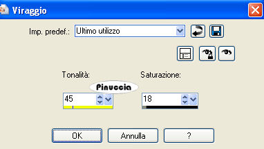 16. Regola>Tonalitā e saturazione>Viraggio, con i settaggi precedenti.