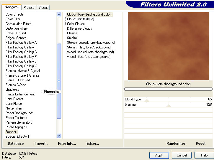 Effetti>Plugins>Render - Clouds (fore-/backgroundcolor).