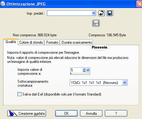 File>Esporta>Ottimizzazione jpeg, compressione 5.