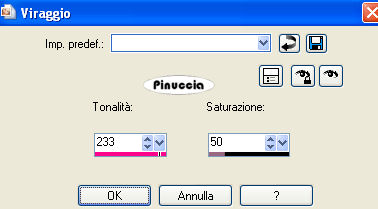 14. Regola>Tonalità e saturazione>Viraggio, con i settaggi precedenti.