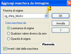 Apri il menu sotto la finestra di origine e vedrai la lista dei files aperti. Tra questi la maschera.