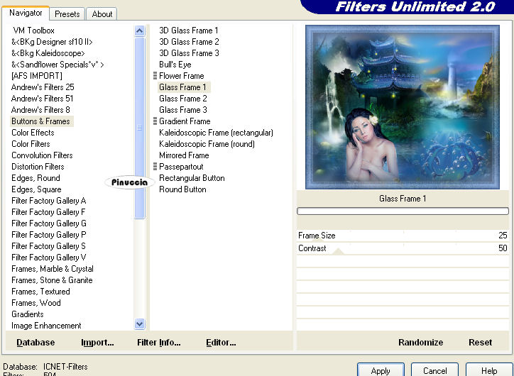 11. Effetti>Plugins>Filters Unlimited 2.0 - Buttons & Frames - Glass Frame 1.