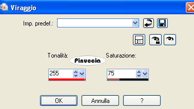6. Regola>Tonalitā e saturazione>Viraggio: