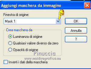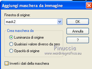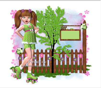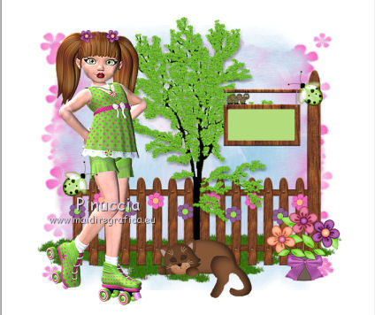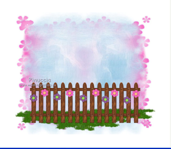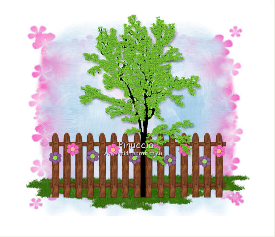 Apri le maschere in PSP e minimizzale con il resto del materiale. 1. Apri una nuova immagine bianca 700 x 600 pixels. 2. Imposta il colore di primo piano con #F666BE. 3. Livelli>Nuovo livello raster. Riempi con il colore di primo piano.4. Livelli>Nuovo livello maschera>Da immagine. Apri il menu sotto la finestra di origine e vedrai la lista dei files aperti. Seleziona la maschera mask1 con i seguenti settaggi: ![]() 5. Livelli>Elimina, e rispondi sì alla domanda Unire la maschera nel livello corrente. ![]() Livelli>Unisci>Unisci gruppo. 6. Immagine>Ridimensiona, all'80%, tutti i livelli non selezionato. Effetti>Effetti di bordo>Aumenta. 7. Apri Blue paper 5. su questa immagine: Livelli>Nuovo livello maschera>Da immagine. Apri il menu sotto la finestra di origine e e seleziona la maschera mask2. ![]() 8. Livelli>Elimina, e rispondi sì. Livelli>Unisci>Unisci gruppo. 9. Torna al tuo lavoro e vai a Modifica>Incolla come nuovo livello. 10. Livelli>Duplica. Immagine>Rifletti. Avrai questo. ![]() 11. Apri il tube "gazon" e vai a Modifica>Copia. Torna al tuo lavoro e vai a Modifica>Incolla come nuovo livello. Spostalo in basso.12. Apri il tube MJ-InTheGardenbrownFence e vai a Modifica>Copia. Torna al tuo lavoro e vai a Modifica>Incolla come nuovo livello. Sposta lo steccato sull'erba.13. Apri il tube flowers e vai a Modifica>Copia. Torna al tuo lavoro e vai a Modifica>Incolla come nuovo livello. Sposta i fiori sullo steccato.![]() 14. Apri il tube ftsweetgum e vai a Modifica>Copia. Torna al tuo lavoro e vai a Modifica>Incolla come nuovo livello. Spostalo in modo che il piede dell'albero si trovi allo stesso livello dello steccato.![]() 15. Apri il tube MJ-InTheGardenFence, e vai a Modifica>Copia. Torna al tuo lavoro e vai a Modifica>Incolla come nuovo livello. Spostalo a destra dello steccato.![]() 16. Apri il tube JazzSadie03, e vai a Modifica>Copia. Torna al tuo lavoro e vai a Modifica>Incolla come nuovo livello. Spostalo a sinistra.17. Apri il tube sunshine_ladybug, e vai a Modifica>Copia. Torna al tuo lavoro e vai a Modifica>Incolla come nuovo livello. Spostalo a sinistra sullo steccato.18. Livelli>Duplica. Immagine>Rifletti. 19. Spostalo il duplicato a destra sul palo.![]() 20. Apri il tube pot_flowers. e vai a Modifica>Copia. Torna al tuo lavoro e vai a Modifica>Incolla come nuovo livello. Spostalo a destra sotto lo steccato.21. Apri il tube MLM_TutShelfKitty, e vai a Modifica>Copia. Torna al tuo lavoro e vai a Modifica>Incolla come nuovo livello. Spostalo ai piedi dell'albero.![]() 22. Apri il tube papillons, e vai a Modifica>Copia. Torna al tuo lavoro e vai a Modifica>Incolla come nuovo livello. Spostalo leggermente a sinistra.23. Apri il tube gg_sun7, e vai a Modifica>Copia. Torna al tuo lavoro e vai a Modifica>Incolla come nuovo livello. Spostalo in alto a destra.24. Apri il tube sadie_texte, e vai a Modifica>Copia. Torna al tuo lavoro e vai a Modifica>Incolla come nuovo livello. Spostalo sulla tabella del palo.25. Livelli>Unisci>Unisci tutto (appiatisci). Firma il tuo lavoro e salva in formato jpg. Se hai problemi o dubbi, o trovi un link non funzionante, o anche soltanto per un saluto, scrivimi.