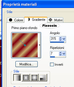 Passa il colore di primo piano a Gradiente con i seguenti settaggi: