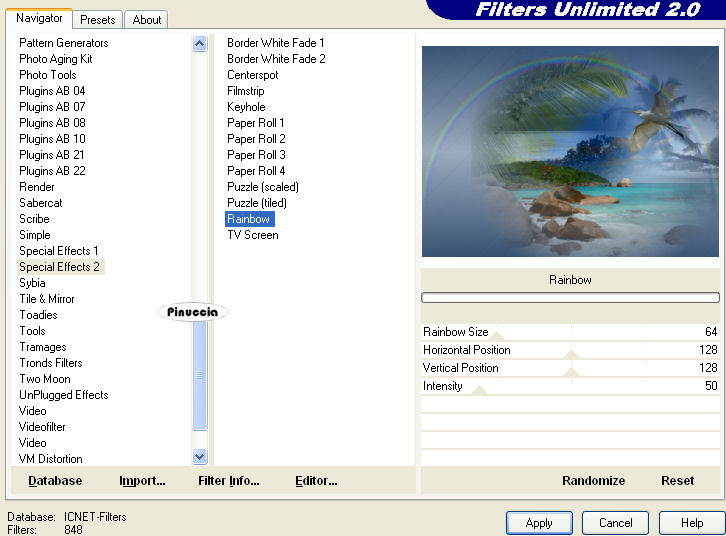 Effetti>Plugins>Filters Unlimited 2.0 - Special Effects 2 - Rainbow.