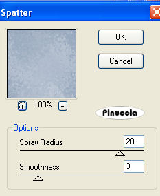 4. Effetti>Plugins>Brush Strokes - Spatter, con i seguenti settaggi.