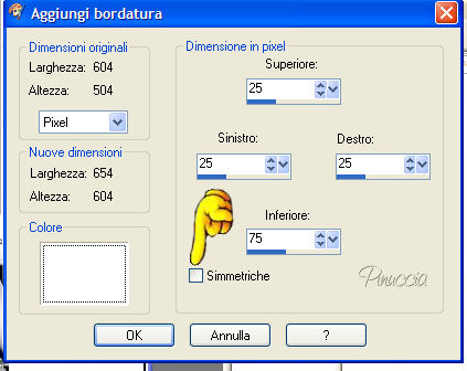 16. Immagine>aggiungi bordatura, simmetrico deselezionato, colore bianco, superiore 25, sinistra e destra 25, inferiore 75.