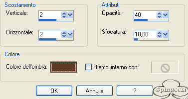 12. Effetti>Effetti 3D>Sfalsa ombra, con i seguenti settaggi: