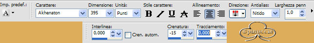 13. Attiva lo strumento testo e seleziona il font Akhenaton, con il colore scuro di primo piano