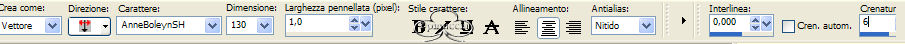 22.Attiva lo strumento testo, cerca il font AnneBoleynSH, colore di primo piano 4F5E61, di sfondo BEC6C3, con questi settaggi: