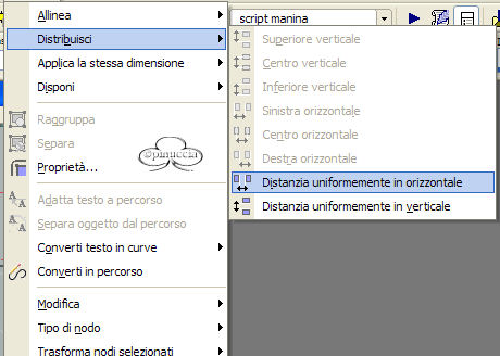 23.Oggetti/Distribuisci/distanzia uniformemente in orizzontale.