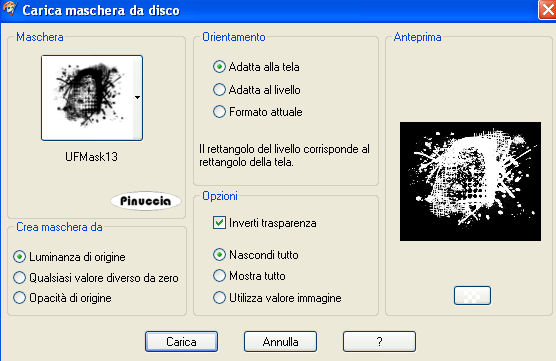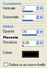 qui puoi trovare qualche risposta ai tuoi dubbi. Se l'argomento che ti interessa non è presente, ti prego di segnalarmelo. Questo tutorial è stato creato e tradotto con PSP X2, ma può essere eseguito anche con le altre versioni di PSP. Per tradurlo, ho usato PSP X. Occorrente: Un tube a scelta. I tubes che ho usato per i miei esempi sono di JM Creations e LCT Scrapkit Urban Fairytales "Down LaPush" http://urbanfairytalesblog.blogspot.com/2009/04/down-lapush-kit.html qui Maschera Urban Fairytales UFMask13 http://urbanfairytalesblog.blogspot.com/2008/10/masks-1-to-25-in-one-zip.html qui Template http://melissav-psp.blogspot.com/ MelissaV'S, PSP Place MV_Template 25 http://www.4shared.com/file/116666728/293434a3/MVTemplates_Set2.html" qui Wordart L'Eden de la Création qui 1. Apri il template MV_Template25. Duplicalo usando la combinazione di tasti maiuscola+D e chiudi l'originale. La copia sarà la base del tuo lavoro. Elimina il livello del watermark. Chiudi tutti i livelli tranne il livello di sfondo bianco e posizionati su questo livello. 2. Immagine>Dimensione tela e clicca sulla mattonella centrale per distribuire equamente lo spazio. ![]() Riempi con il colore bianco.3. Livelli>Nuovo livello raster. Selezione>Seleziona tutto. Apri UFDownlapushpaper 5. Immagine>Ridimensiona, all'85%. Modifica>Copia, e minimizza la carta perchè ti servirà ancora. Torna al tuo lavoro e vai a Modifica>Incolla nella selezione. Selezione>Deseleziona. 4. Livelli>Carica/Salva maschera>Carica maschera da disco. Cerca e carica la maschera UFMask13: ![]() Livelli>Unisci>Unisci gruppo. 5. Apri e attive il livello "backrectangle". Selezione>Seleziona tutto. Selezione>Mobile. Selezione>Immobilizza. Riempi con il colore #2f2f2f.Effetti>Effetti 3D>Sfalsa ombra: ![]() Ripeti l'Effetto Sfalsa ombra, cambiando verticale e orizzontale con -2/-1. 6. Apri e attiva il livello "front rectangle". Selezione>Seleziona tutto. Selezione>Mobile. Selezione>Immobilizza. Apri la carta UFDownlapushpaper3. Immagine>Ridimensiona, al 90%. Modifica>Copia, e minimizza anche questa carta che userai ancora. Torna al tuo lavoro e vai a Modifica>Incolla nella selezione. Apri UFlashpushwa6 e vai a Modifica>Copia. Torna al tuo lavoro e vai a Modifica>Incolla come nuovo livello. Selezione>Inverti. Posiziona il tube come nel mio esempio.Premi sulla tastiera il tasto CANC. Livelli>Unisci>Unisci giù. Selezione>Deseleziona. Effetti>Effetti 3D>Sfalsa ombra: ![]() Ripeti l'Effetto Sfalsa ombra, cambiando verticale e orizzontale con -2/-1. 7. Apri e attiva il livello "circleback". Selezione>Seleziona tutto. Selezione>Mobile. Selezione>Immobilizza. Selezione>Inverti. Apri la carta UFDownlapushpaper2 e vai a Modifica>Copia. Torna al tuo lavoro e vai a Modifica>Incolla come nuovo livello. Premi il tasto CANC. Selezione>Deseleziona. Livelli>Unisci>Unisci giù. Effetti>Effetti 3D>Sfalsa ombra: ![]() Ripeti l'Effetto Sfalsa ombra, cambiando verticale e orizzontale con -2/-1. 8. Apri e attiva il livello "middle circle". Selezione>Seleziona tutto. Selezione>Mobile. Selezione>Immobilizza. Selezione>Inverti. Attiva nuovamente la carta UFDownlapushpaper3 e vai a Modifica>Copia. Torna al tuo lavoro e vai a Modifica>Incolla come nuovo livello. Premi il tasto CANC. Effetti>Effetti 3D>Sfalsa ombra: ![]() Ripeti l'Effetto Sfalsa ombra, cambiando verticale e orizzontale con -2/-1. Selezione>Deseleziona. Livelli>Unisci>unisci giù. 9. Apri e attiva il livello "front circle". Selezione>Seleziona tutto. Selezione>Mobile. Selezione>Immobilizza. Selezione>Inverti. Attiva nuovamente la carta UFDownlapush5 e vai a Modifica>Copia. Torna al tuo lavoro e vai a Modifica>Incolla come nuovo livello. Premi il tasto CANC. Effetti>Effetti 3D>Sfalsa ombra: ![]() Ripeti l'Effetto Sfalsa ombra, cambiando verticale e orizzontale con -2/-1. Selezione>Deseleziona. Livelli>Unisci>Unisci giù. 10. Apri il tuo tube e vai a Modifica>Copia. Torna al tuo lavoro e vai a Modifica>Incolla come nuovo livello. Immagine>Ridimensiona, se e quanto necessario. Posiziona correttamente il tube.Effetti>Effetti 3D>sfalsa ombra. ![]() 11. Apri l'elemento UFfoiliagelapush. Immagine>Ridimensiona, al 75%. Modifica>Copia. Torna al tuo lavoro e vai a Modifica>Incolla come nuovo livello. Sposta il tube come nel mio esempio.12. Apri l'elemento UFlashpushframe. Immagine>Ridimensiona al 60%. Modifica>copia. Torna al tuo lavoro e vai a Modifica>Incolla come nuovo livello. Posiziona il cuore in alto, come nel mio esempio.Nella paletta dei livelli sposta questo livello sopra il livello "back circle". Nel mio esempio ho cancellato l'ombra del cuore, sei libero, se vuoi, di lasciarla. Se la vuoi cancellare, clicca sull'ombra con la bacchetta magica e premi il tasto CANC.Effetti>Effetti 3D>Sfalsa ombra. ![]() 13. Apri l'elemento UFWirhooklapush. Immagine>Ridimensiona, al 50%. Modifica>copia. Torna al tuo lavoro e vai a Modifica>Incolla come nuovo livello. Nella paletta dei livelli sposta il livello sotto il livello "back rectangle". Effetti>Effetti 3D>Sfalsa ombra. ![]() 14. Apri il wordart_twilight-graphiceden, e vai a Modifica>copia. Torna al tuo lavoro e vai a Modifica>Incolla come nuovo livello. Posiziona il testo come nel mio esempio.Aggiungi il tuo nome e/o il tuo watermark, senza dimenticare eventuali copyright delle immagini usate. Livelli>Unisci>Unisci tutto e salva in formato jpg. ![]() ![]() Se hai problemi o dubbi, o trovi un link non funzionante, o anche soltanto per un saluto, scrivimi. 19 Novembre 2008 |