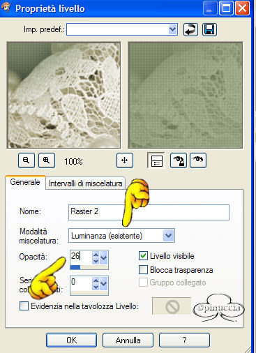 6. Nella paletta dei livelli imposta modalità di miscelatura in Luminanza esistente e abbassa l'opacità del livello al 26%.