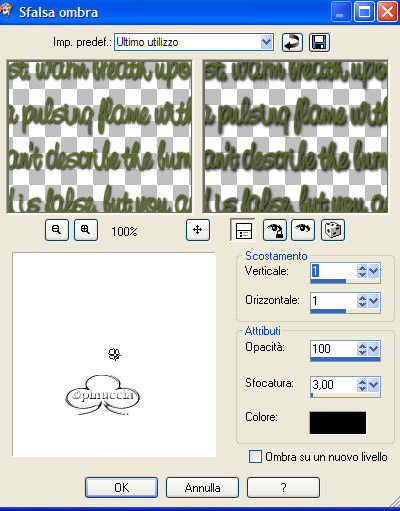 12. Effetti>Effetti 3D>Sfalsa ombra con questi settaggi: