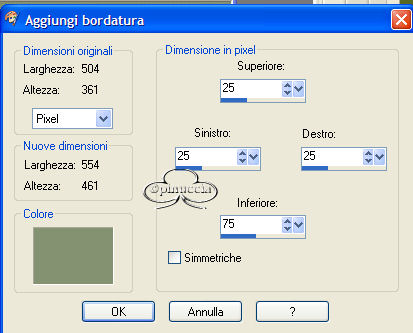 17. Immagine>Aggiungi bordatura simmetrico non selezionato, superiore 25, sinistra 25, destra 25, inferiore 75, colore #859271.