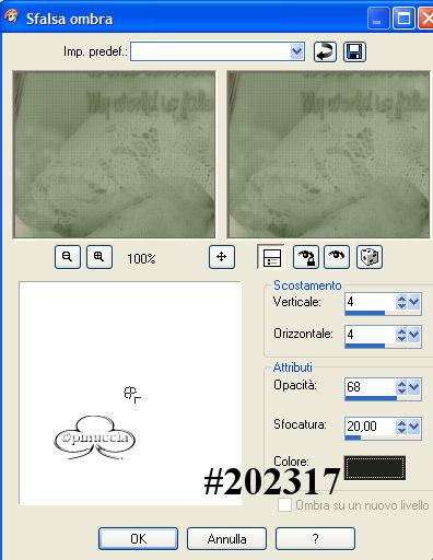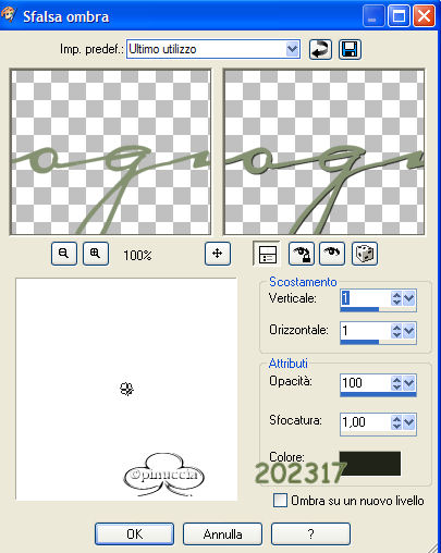 Effetti>Effetti 3D>Sfalsa ombra, colore #202317.