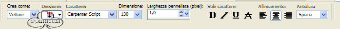 20. Attiva lo strumento Testo, font Carpenter script, dimensione 130, pennellata 1, antialias spiana, vector, imposta il colore di sfondo #859271, primo piano nullo.