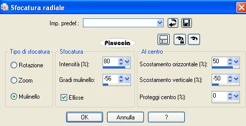 6. Regola>Sfocatura>Sfocatura radiale, con i seguenti settaggi.