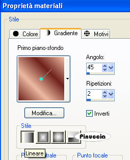 4. Passa il colore di primo piano a Gradiente di primo piano/sfondo, stile lineare, con i seguenti settaggi: