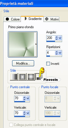 4. Passa il colore di primo piano a Gradiente di primo piano/sfondo, stile radiale, con i seguenti settaggi: