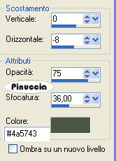 46. Effetti>Effetti 3D>Sfalsa ombra, con i seguenti settaggi, colore #4a5743.