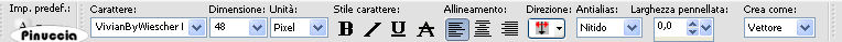 , font VivianByWiescher Design, con i seguenti settaggi: