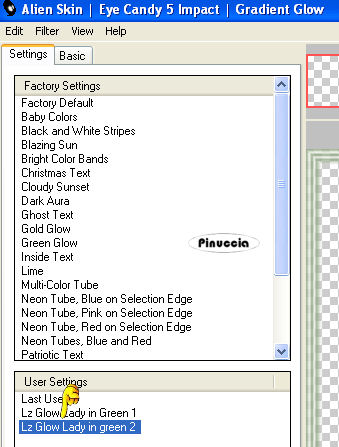 .Voorinstelling Glow, sono due impostazioni predefinite, da mettere nalla cartella del filtro Alien Skin Eye Candy 5 Impact>Settings>Glow.