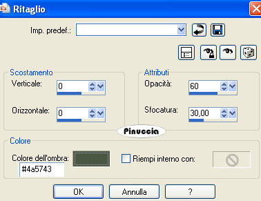 60. Effetti>Effetti 3D>Ritaglio, con i seguenti settaggi, con il colore scuro #4a5743.