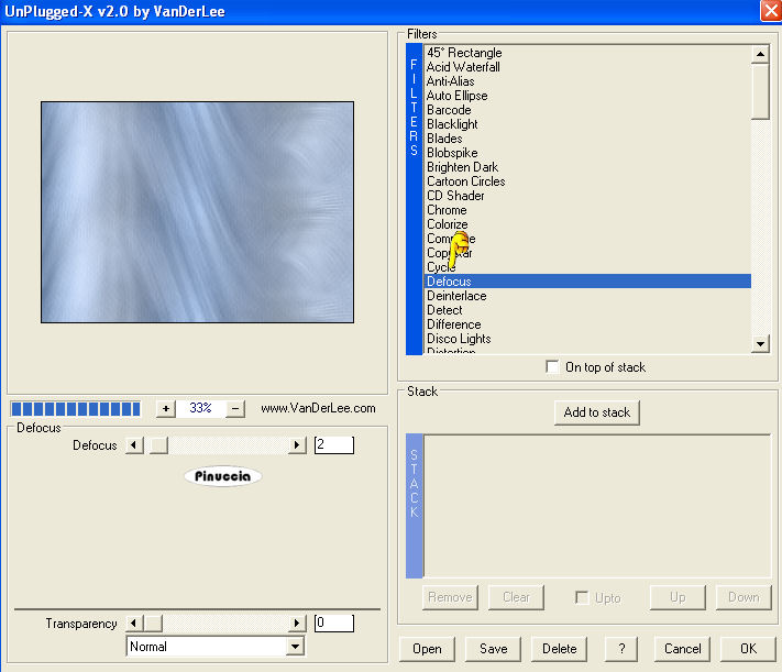 seleziona Defocus con i seguenti settaggi.