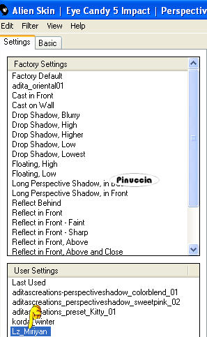 4. Lz_Miriyan Voorinstelling Shadow (preset da copiare nella cartella del filtro Alien Skin Eye Candy 5 Nature>Settings>Shadow (vale il discorso già fatto per il preset precedente).