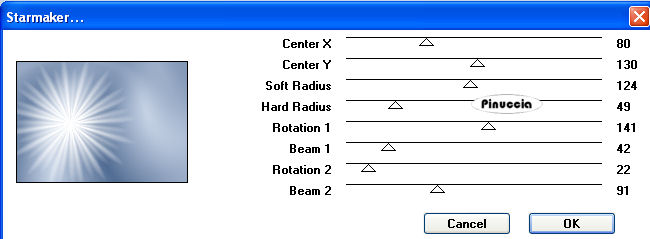 e seleziona Stella 1, con i seguenti settaggi.