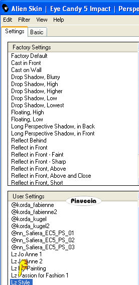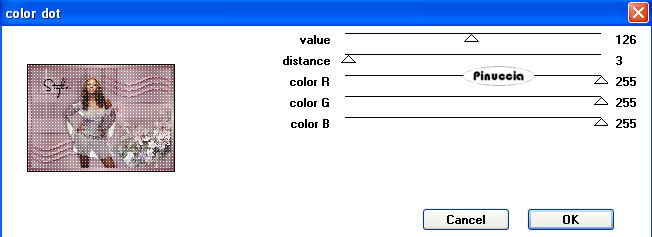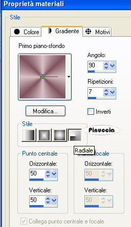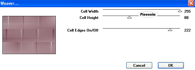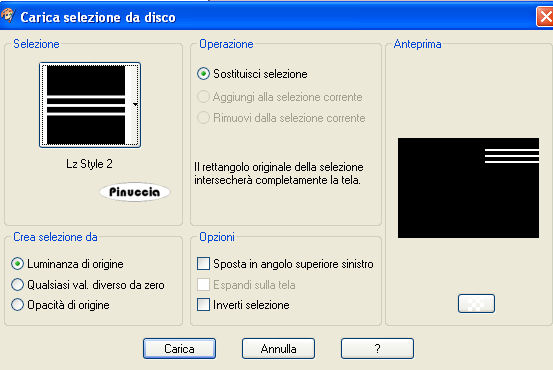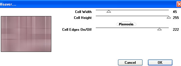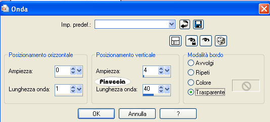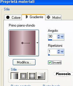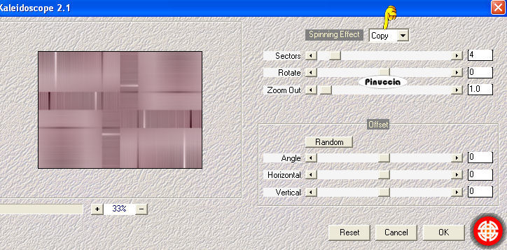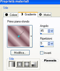qui puoi trovare qualche risposta ai tuoi dubbi. Se l'argomento che ti interessa non è presente, ti prego di segnalarmelo. Occorrente: Materiale qui I tubes che ho usato sono di Emeralda e Tailouana. Una volta scompattato lo zip, ti troverai tre cartelle: .Selecties, sono le selezioni da mettere nella cartella Selezioni. Graphics Plus qui Toadies - Weaver qui Penta.com - color dot qui Mehdi - Kaleidoscope qui Alien Skin Eye Candy 5 Impact - Perspective Shadow qui ![]() 1. Apri una nuova immagine trasparente 700 x 500 pixels. 2. Imposta il colore di primo piano con il colore scuro #d9c0c6. 3. Imposta il colore di sfondo con il colore chiaro #7f535d. 4. Passa il colore di primo piano a Gradiente di primo piano/sfondo, stile lineare, con i seguenti settaggi: ![]() 5. Riempi l'immagine trasparente con il gradiente.6. Effetti>Plugins>Mehdi - Local Equalization. 7. Effetti>Plugins>Toadies - Weaver: ![]() 8. Effetti>Plugins>Mehdi - Kaleidoscope 2.1 - imposta spinning effect su Copy: ![]() 9. Sullo stesso livello: Selezione>Carica/Salva selezione>Carica selezione da disco. Cerca e carica la selezione LZ Style 1: ![]() 10. Effetti>Plugins>Toadies - Weaver: ![]() 11. Selezione>Deseleziona. 12. Livelli>Nuovo livello raster. 13. Selezione>Carica/Salva selezione>Carica selezione da disco. Cerca e carica la selezione LZ Style 2: ![]() 14. Cambia i settaggi del gradiente: ![]() 15. Riempi la selezione con il gradiente.16. Selezione>Deseleziona. 17. Effetti>effetti di bordo>Aumenta di più. 18. Effetti>Effetti di distorsione>Vento - da destra, intensità 100. ![]() 19. Effetti>Effetti di distorsione>Onda: ![]() 20. Livelli>Duplica. 21. Immagine>Rifletti. 22. Immagine>Capovolgi. 23. Immagine>Unisci>Unisci giù. 24. Effetti>effetti 3D>Sfalsa ombra: ![]() 25. Cambia la modalità di miscelatura di questo livello in Sovrapponi, e abbassa l'opacità al 70%. ![]() 26. Livelli>nuovo livello raster. 27. Selezione>Carica/Salva selezione>Carica selezione da disco. Cerca e carica la selezione LZ Style 3: ![]() 28. Riempi la selezione con il gradiente del punto 14.![]() 29. Selezione>Deseleziona. 30. Effetti>Effetti di bordo>Aumenta di più. 31. Effetti>Effetti di distorsione>Vento - da sinistra, intensità 100. ![]() 32. Effetti>Effetti 3D>sfalsa ombra, come al punto 24. ![]() Cambia la modalità di miscelatura di questo livello in Sovrapponi e abbassa l'opacità al 70%. 33. Apri agi_wb_style.psp e vai a Modifica>copia. 34. Torna al tuo lavoro e vai a Modifica>Incolla come nuovo livello. Posiziona il testo al centro del rettangolo.Cambia la modalità di miscelatura di questo livello in Moltiplica, e lascia l'opacità al 100%. 35. Apri il tube tailouana_fleurs91.psp e vai a Modifica>copia. 36. Torna al tuo lavoro e vai a Modifica>Incolla come nuovo livello. 37. Sposta il tube nell'angolo in basso a destra.38. Apri il tube beyoncè4.psp e vai a Modifica>Copia. 39. Torna al tuo lavoro e vai a Modifica>Incolla come nuovo livello. 40. Effetti>effetti di immagine>Scostamento: ![]() 41. Effetti>Plugins>Alien Skin Eye Candy 5 Impact - Perspective Shadow, seleziona il preset Lz Style e clicca ok. ![]() nella mia schermata le impostazioni si trovano nella parte inferiore, perchè le ho richiamate dalla cartella del tutorial. Se le avessi salvate nella cartella del filtro, si troverebbero nella parte superiore 42. Livelli>Unisci>Unisci tutto. 43. Immagine>Aggiungi bordatura, 1 pixel, simmetriche, con il colore scuro #7f535d. 44. Cambia i settaggi del gradiente: ![]() Selezione>Seleziona tutto. 45. Immagine>Aggiungi bordatura, 15 pixels, simmetriche, con il colore chiaro #d9c0c6. 46. Selezione>inverti. 47. Riempi la selezione con il gradiente.48. Effetti>Plugins>Penta.com - Color Dot: ![]() 49. Selezione>Seleziona tutto. 50. Immagine>Aggiungi bordatura, 8 pixels, simmetriche, con il colore scuro #7f535d. 51. Selezione>Inverti. 52. Effetti>Plugins>Graphics Plus - Cross Shadow, con i settaggi standard. ![]() 53. Selezione>Seleziona tutto. 54. Immagine>Aggiungi bordatura, 15 pixels, simmetriche, con un colore qualsiasi. 55. Selezione>inverti. 56. Riempi la selezione con il gradiente.57. Effetti>Plugins>Penta.com - Color Dot, con i settaggi precedenti. 58. Selezione>Deseleziona. 59. Immagine>Aggiungi bordatura, 2 pixels, simmetriche, con il colore scuro #7f535d. 60. Selezione>Seleziona tutto. 61. Selezione>Modifica>Contrai - 40 pixels. 62. Effetti>Effetti 3D>Sfalsa ombra: ![]() 63. Ripeti l'Effetto Sfalsa cambiando verticale e orizzontale con -7. 64. Selezione>Deseleziona. Aggiungi il tuo nome e/o il tuo watermark e salva in formato jpg. Per questi esempi ho usato tubes di Jet, Luz Cristina, M.Tique e Matteo. ![]() ![]() ![]() Se hai problemi o dubbi, o trovi un link non funzionante, o anche soltanto per un saluto, scrivimi. 30 Marzo 2009 |
