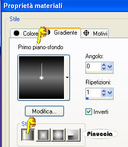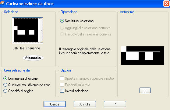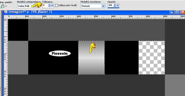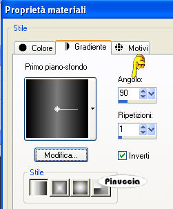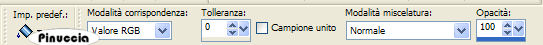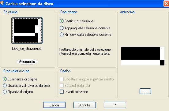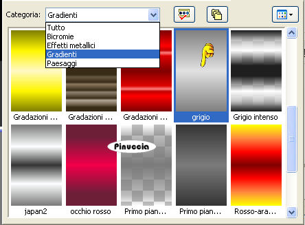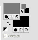 qui puoi trovare qualche risposta ai tuoi dubbi. Se l'argomento che ti interessa non è presente, ti prego di segnalarmelo. Questo tutorial è stato realizzato con PSP 9 e tradotto con Corel X, ma può essere realizzato anche con le altre versioni di PSP. Dalla versione X4, il comando Immagine>Rifletti è stato sostituito con Immagine>Capovolgi in orizzontale, e il comando Immagine>Capovolgi con Immagine>Capovolgi in verticale. Nelle versioni X5 e X6, le funzioni sono state migliorate rendendo disponibile il menu Oggetti. Con la nuova versione X7, sono tornati Rifletti>Capovolgi, ma con nuove varianti. Vedi la scheda sull'argomento qui Occorrente: Selezioni L&K les Shayenne qui (metti le selezioni nella cartella selezioni) Gradiente Grijs qui (metti il gradiente nella cartella gradiente) I tube "Jasc chain square silver 1" e "Dominamiss_vivarant" qui (metti il tube in una cartella a scelta) Preparazione: Imposta il colore di primo piano con il nero #000000. Questo tutorial è stato scritto per i colori nero e grigio, ma potrai poi cambiarli a tuo piacimento, per accordarti ai colori del tuo tube. 1. Apri una nuova immagine trasparente 1024 x 450 pixels. 2. Selezione>Carica/salva selezione>Carica selezione da disco. Cerca e carica la selezione L&K les Shayenne 1, con i seguenti settaggi: ![]() 3. Riempi la selezione con il nero.![]() 4. Selezione>Carica/Salva selezione>Carica selezione da disco. Cerca e carica la selezione L&K les Shayenne 2: ![]() 5. Riempi le due selezioni con il colore #353535.![]() 6. Selezione>Carica/Salva selezione>Carica selezione da disco: Cerca e carica la selezione L&K les Shayenne 3: 7. Riempi la selezione con il colore #505050.![]() 8. Selezione>Carica/Salva selezione>Carica selezione da disco. Cerca e carica la selezione L&K les Shayenne 4. 9. Riempi le due selezioni con #7b7b7b.![]() 10. Selezione>Nessuna selezione. 11. Attiva lo strumento Bacchetta magica ![]() ![]() e seleziona i due quadrati indicati nella schermata: ![]() 12. Nella paletta dei materiali passa il colore di primo piano a Gradiente, cerca e seleziona il gradiente Grigio, che è standard in PSP 9. Se non lo trovi, usa il gradiente Grijs, che ti è stato fornito con il materiale. ![]() ![]() 13. Riempi con questo gradiente il primo quadrato.![]() fai attenzione: per riempire soltanto un quadrato lo strumento Riempimento deve essere impostato su Valore RGB. ![]() 14. Imposta il colore di sfondo con il nero. Mantieni il colore di primo piano impostato su #7b7b7b. ![]() 16. Passa il colore di primo piano a Gradiente di primo piano/sfondo, con i seguenti settaggi: ![]() 17. Riempi il secondo quadrato con questo gradiente.![]() 18. Selezione>Nessuna selezione. 19. Cambia i settaggi del gradiente: ![]() 20. Livelli>Nuovo livello raster. 21. Selezione>Carica/Salva selezione>Carica selezione da disco. Cerca e carica la selezione L&K les Shayenne 5. 22. Riempi la selezione con il gradiente.![]() 23. Selezione>Nessuna selezione. 24. Effetti>Effetti di bordo>Dilata. 25. Se vuoi lasciare il tutorial con lo sfondo nero/grigio, vai a: Regola>Saturazione e tonalità>Viraggio e scegli un colore che si abbina al tube per colorare la piccola striscia. (come usare il Viraggio, vedi ). Se invece vuoi cambiare i colori a tutto il lavoro, salta il passaggio precedente. Potrai usare il viraggio più tardi (vedi il punto 38). 26. Cambia nuovamente il settaggio del gradiente, riportando l'angolo a 0. ![]() 27. Livelli>Nuovo livello raster. 28. Selezione>Carica/Salva selezione>Carica selezione da disco. Cerca e carica la selezione L&K les Shayenne 6. 29. Riempi la selezione con il gradiente.![]() 30. Selezione>Nessuna selezione. 31. Effetti>Effetti di bordo>Aumenta. 32. Apri il tube chain square silver 1 e vai a Modifica>Copia. 33. Torna al tuo lavoro (l'immagine 1024x450) e vai a Modifica>Incolla>Incolla come nuovo livello. 34. Sposta il tube come nell'esempio.![]() 35. Livelli>Duplica. 36. Immagine>Capovolgi. 37. Livelli>Unisci>Unisci tutto. 38. Se preferisci usare altri colori, questo è il momento di colorizzare. Regola>Saturazione e tonalità>Viraggio e scegli un colore che si abbini al tuo tube. 39. Apri il tube dominamiss_vivarant (fornito con il tutorial). se stai usando un tuo tube, controlla le dimensioni. 40. Immagine>Ridimensiona, a 195 pixels di altezza, tutti i livelli selezionato. 41. Regola>Messa a fuoco>Maschera di contrasto: ![]() 42. Modifica>Copia. 43. Torna al tuo lavoro (1024x450) e vai a Modifica>Incolla>Incolla cme nuovo livello. 44. Posiziona il tube come preferisci.45. Livelli>Unisci>Unisci tutto. Firma il tuo lavoro e salva in formato jpg. ![]() Se hai problemi o dubbi, o trovi un link non funzionante, o anche soltanto per un saluto, scrivimi 21 Agosto 2007 |